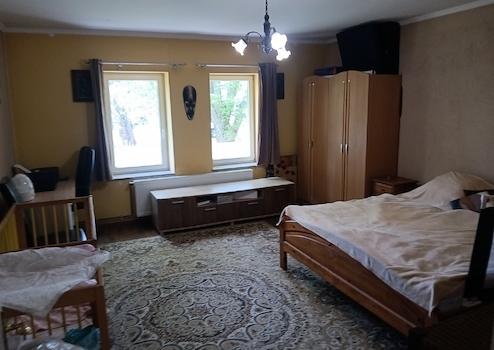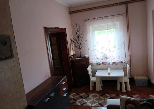 Három szoba, előszoba, konyha, fürdőszoba és WC található az ingatlanban. Továbbá egy 45 négyzetméteres garázs, melyből egy kamra nyílik, ahonnan a padlás közelíthető meg.