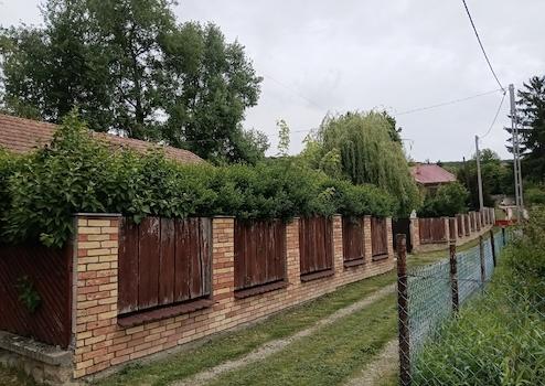 A kert 600 négyzetméter, melyen fűzfa, gyümölcsfák, tuják és rózsabokrok találhatók. Bő vizű, kővel rakott kút biztosítja a locsoláshoz szükséges vizet.