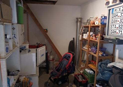 Das Haus verfügt über drei Zimmer, einen Flur, eine Küche, ein Bad und ein WC. Außerdem gibt es eine 45 m² große Garage mit Zugang zu einer Speisekammer und einem Dachboden.
