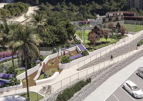 Die Anlage besticht durch beeindruckende Gemeinschaftsbereiche auf 5.400 m², darunter Pools für Erwachsene und Kinder, 2 Jacuzzis, ein Kinderspielplatz, ein ausgestattetes Fitnessstudio, Paddle-Tennis- und Mehrzwecksportplatz, weitläufige Grünflächen sowie mehrere Fahrradstellplätze.