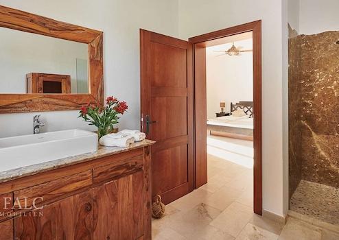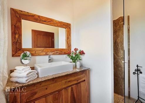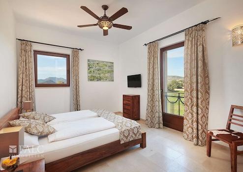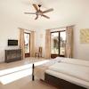 Fünf stilvoll eingerichtete Schlafzimmer – jedes mit einem luxuriösen Bad en Suite, modernen Naturstein-Elementen und bequemen Wasserbetten – bieten Rückzugsorte, die sowohl Komfort als auch Ruhe schenken. Die warmen Naturtöne, kombiniert mit modernster Technik wie Fußbodenheizung und Deckenventilatoren, schaffen eine Wohlfühlatmosphäre zu jeder Jahreszeit.