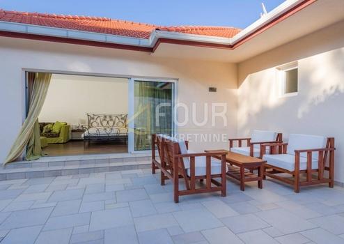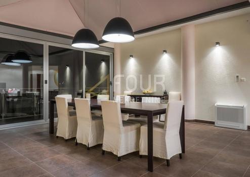 Sie erstreckt sich über zwei Etagen mit insgesamt 520 m² Wohnfläche und einem großzügigen Garten mit gestalteten Grünflächen, Pool und Terrassen. Das Interieur strahlt Eleganz und Funktionalität aus – ein geräumiges Wohnzimmer und Essbereich, eine voll ausgestattete Küche, klimatisierte Räume mit Fußbodenheizung sowie luxuriöse Schlafzimmer mit en-suite Badezimmern schaffen die Atmosphäre eines privaten Luxusresorts.