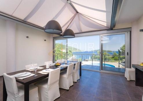 Der Außenbereich rund um den Pool bietet Bereiche zum Entspannen und Speisen im Freien, Sonnenterrassen, eine Garage, zusätzliche Parkplätze und einen privaten Yachtliegeplatz. Alles ist darauf ausgelegt, Ihren Aufenthalt so komfortabel, ruhig und exklusiv wie möglich zu gestalten.