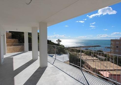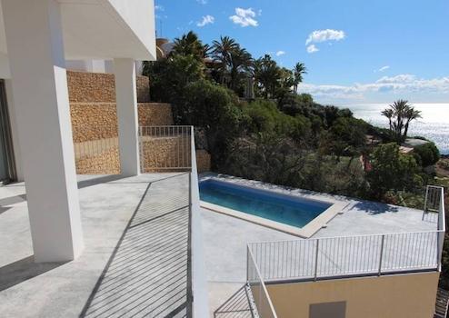 Diese großzügige Neubau-Villa in erhöhter Lage beeindruckt mit fantastischem Meerblick, 4 Schlafzimmern, 4 eleganten Badezimmern, mehreren großzügigen Terrassen, einem privaten Aufzug, Klimaanlage sowie einem herrlichen Poolbereich - alles, was Sie für ein komfortables Leben an der Costa Blanca benötigen.