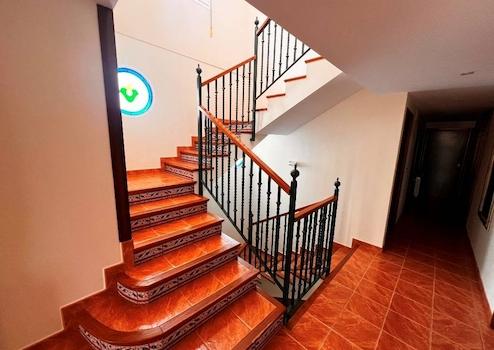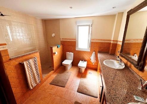 Im Obergeschoss erwarten Sie drei weitere Schlafzimmer, zwei Bäder, ein Abstellraum sowie ein separates Studio mit eigenem Wohnbereich, Schlafzimmer und zwei Terrassen. Von hier aus eröffnet sich ein traumhafter Panoramablick auf die Küste, die Berge und das Dorf Jijona.