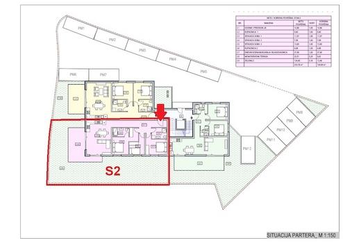 Die Wohnung mit der Bezeichnung TS-S2 steht im Erdgeschoss eines Gebäudes mit drei weiteren Stockwerken und insgesamt acht Wohnungen zum Verkauf.