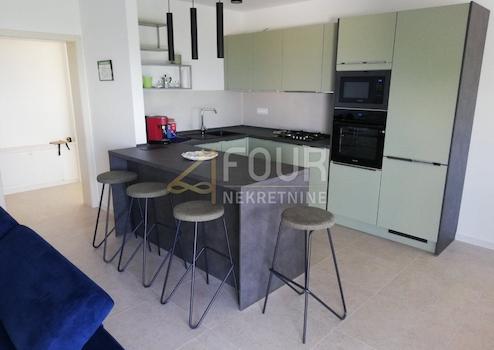 In einer ruhigen Gegend von Kostrena steht eine moderne Wohnung zur Verfügung, die das gesamte erste Stockwerk eines neu erbauten Privathauses einnimmt. Die großzügige Wohnung mit 135 m² verfügt über einen separaten Eingang, der absolute Privatsphäre gewährleistet. Sie besteht aus zwei Schlafzimmern und einem Wohnzimmer, wobei das Hauptschlafzimmer über einen begehbaren Kleiderschrank und ein eigenes Bad verfügt.