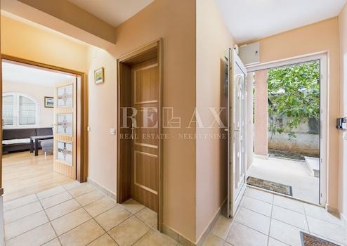 Die Gesamtfläche des Hauses beträgt 220 m², das Grundstück umfasst 400 m². Das Gebäude besteht aus zwei separaten Wohnungen, jede mit eigenem Eingang, was den Bewohnern volle Unabhängigkeit ermöglicht. Die Erdgeschosswohnung verfügt über zwei Schlafzimmer, ein Badezimmer, eine Küche mit Essbereich und Wohnzimmer sowie eine überdachte Terrasse mit Sommerküche. Die Wohnung im Obergeschoss besteht ebenfalls aus zwei Schlafzimmern, einem Badezimmer, einer Küche mit Essbereich und Wohnzimmer sowie einem Balkon.