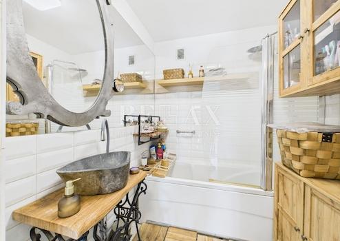 Die Wohnung besteht aus drei Schlafzimmern, einer Küche, einem Badezimmer, einem Flur und einem Vorraum. Das rustikale Interieur mit sorgfältig ausgewählten Details verleiht dem Raum besondere Wärme und Charakter, während die neu ausgestattete Küche Funktionalität und ästhetischen Reiz vereint. Die südwestliche Ausrichtung sorgt den ganzen Tag über für reichlich Tageslicht, und Glaswände an der Südseite unterstreichen zusätzlich das Gefühl von Offenheit und Naturverbundenheit.