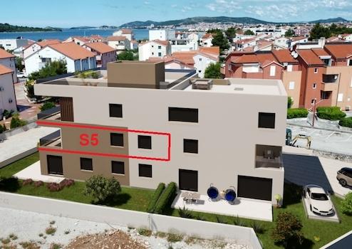 Die Wohnung mit der Bezeichnung TS-S5 befindet sich im 1. Stock eines Gebäudes mit Erdgeschoss und drei weiteren Etagen. Insgesamt befinden sich dort acht Wohnungen.