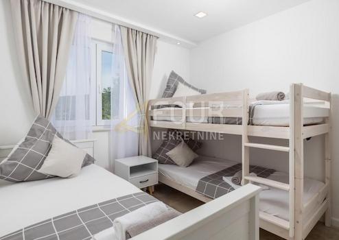 Im Angebot steht ein wunderschönes freistehendes Haus mit drei Wohneinheiten, beheiztem Pool und eigenem Wellness-/Spa-Bereich in dem schönen Jadranovo! Erbaut im Jahr 2011 aus hochwertigen Materialien, wurde das Innere sorgfältig gestaltet. Im Erdgeschoss befindet sich eine Wohnung vom Typ 2 Schlafzimmer und Wohnzimmer mit Küche und Esszimmer, mit einer Fläche von 80 m2, während im ersten Stock eine Wohnung desselben Typs mit ebenfalls 80 m2 liegt. Im Untergeschoss befindet sich eine kleinere Wohnung vom Typ 1 Schlafzimmer und Wohnzimmer mit Küche und Esszimmer, mit einer Fläche von 30 m2. Das besondere Flair dieses Anwesens verleiht der Wellness-/Spa-Bereich und der beheizte Pool mit einer Fläche von ca. 30 m2, perfekt zum Entspannen und Genießen. Das Anwesen verfügt außerdem über vier Parkplätze. Eine ausgezeichnete Investition für die touristische Vermietung! Sehr geehrte Kunden, die Agenturgebühr wird gemäß den Allgemeinen Geschäftsbedingungen erhoben.
