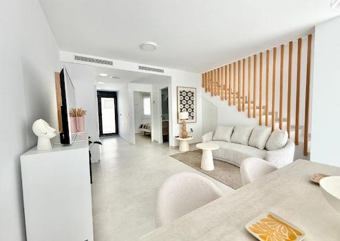 Diese großzügige Reihenvilla bietet mit 3 Schlafzimmern und 2 Badezimmern den idealen Raum für Familien oder Paare, die Wert auf Komfort und Lebensqualität legen. Besonders hervorzuheben ist die Außenküche, die zum entspannten Kochen und geselligen Beisammensein im Freien einlädt - perfekt für sommerliche Abende mit Freunden und Familie.