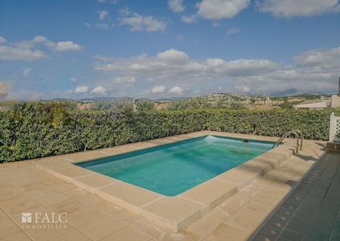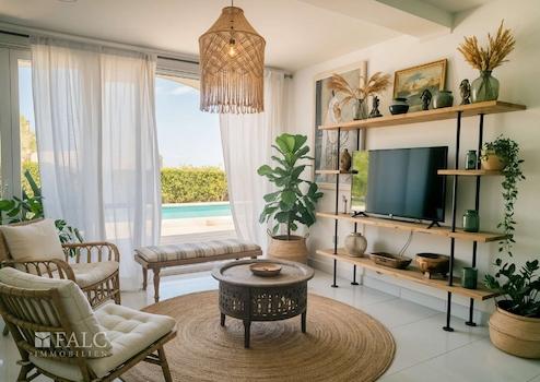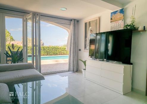Der Außenbereich lädt zum Entspannen ein – mit Pool, weitläufigen Terrassen, einer BBQ-Zone und gepflegtem Garten. Ideal, um die mediterrane Sonne in absoluter Privatsphäre zu genießen.