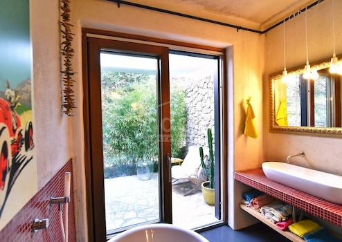 Landschaftlich gestalteter Garten, umgeben von einer authentischen Steinmauer – absolute Privatsphäre und mediterranes Ambiente