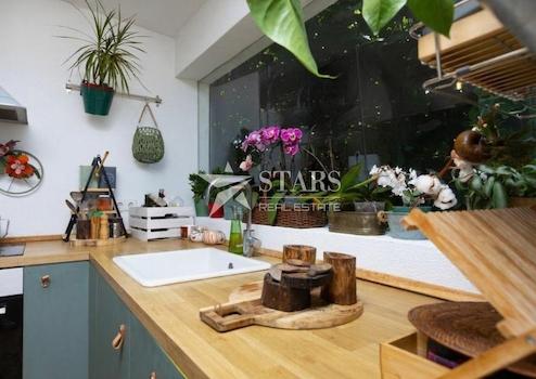 Die Wohnung verfügt über zwei Eingänge – einen durch das Gebäude und einen über die Terrasse, was ihr das Gefühl eines eigenständigen Hauses verleiht.