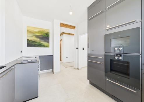 Ein absolutes Highlight stellt die neu installierte Luxusküche der Marke GAGGENAU dar. Hochwertige Geräte und eine großzügige Arbeitsfläche verwandeln diesen Bereich in einen Ort kulinarischer Erlebnisse und stilvollen Designs. Die Erneuerung sämtlicher Installationen sowie die Dämmung des Wohngeschosses, ergänzt durch neue dreifach verglaste Fenster, sorgen für höchste Wohnqualität und Energieeffizienz.