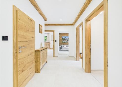 Die barrierefreie Wohneinheit im Erdgeschoss beeindruckt mit einer Wohnfläche von über 133 m² und einer durchdachten Raumaufteilung. Drei geräumige Schlafzimmer, ein großzügiges Wohnzimmer, eine moderne Küche, ein Badezimmer sowie ein Abstellraum, Vorzimmer und ein repräsentativer Eingangsbereich schaffen ein harmonisches Wohnambiente. Besondere Akzente setzen edle Altholz-Elemente, die der Einheit eine warme und stilvolle Note verleihen.