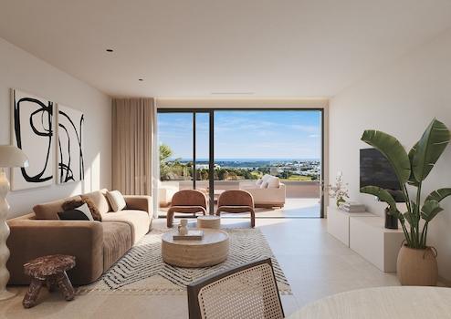Diese exklusiven Apartments sind ideal für alle, die Wert auf Qualität und Stil legen. Sie bieten wahlweise zwei oder drei Schlafzimmer, jeweils mit zwei elegant gestalteten Badezimmern, eines davon en suite. Die hellen und offenen Wohnbereiche schaffen eine perfekte Verbindung zwischen Innen- und Außenbereich, sodass Sie das mediterrane Lebensgefühl das ganze Jahr über genießen können.