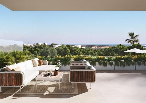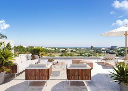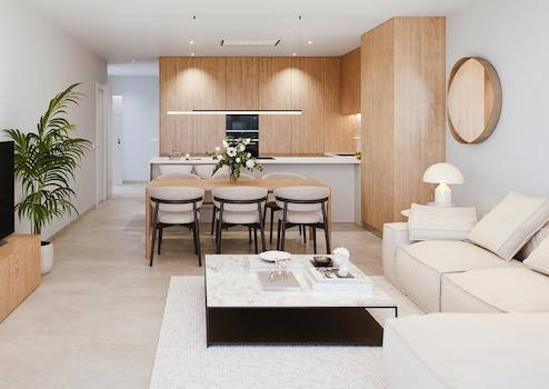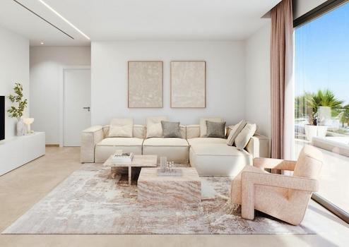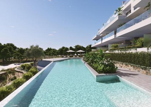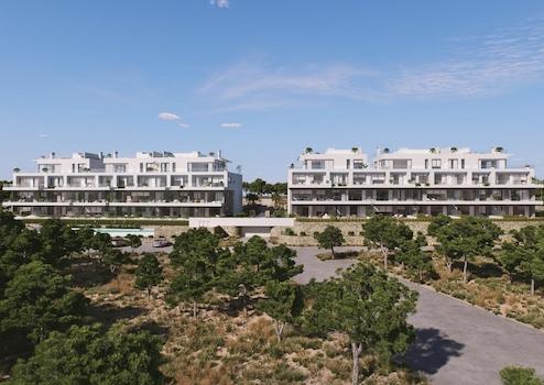 Diese großzügigen Apartments mit drei Schlafzimmern und zwei Badezimmern überzeugen durch lichtdurchflutete Räume und außergewöhnlich große Terrassen ab 20 m². Von jeder Wohnung aus genießen Sie einen herrlichen, unverbaubaren Blick auf den grünen Golfplatz, die dichten Pinienwälder und in der Ferne das tiefblaue Mittelmeer - eine einmalige Kombination aus Natur, Weite und mediterranem Lebensgefühl.