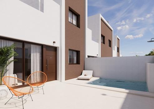 Diese moderne Reihenvilla bietet drei Schlafzimmer und zwei Badezimmer sowie die Möglichkeit, einen privaten Swimmingpool zu integrieren. Ein Parkplatz auf dem eigenen Grundstück sorgt für zusätzlichen Komfort. Pilar de la Horadada ist eine charmante und gut ausgestattete Stadt an der südlichen Costa Blanca, die mit Supermärkten, Restaurants, Boutiquen und einem lebhaften Ortskern überzeugt. Die weitläufigen Sandstrände von Torre de la Horadada und Mil Palmeras sind nur fünf Autominuten entfernt. Außerdem sind Golfplätze, das Einkaufszentrum La Zenia Boulevard sowie die Flughäfen Murcia und Alicante schnell und bequem erreichbar. Dieses Objekt vereint Komfort, Lage und Lebensqualität in idealer Weise.