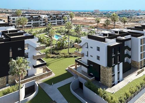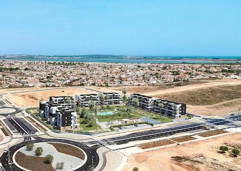 Der Neubau-Komplex La Hoya besteht aus luxuriösen Apartments mit zwei Schlafzimmern und zwei Badezimmern und großen Terrassen in einer lebhaften Gegend von Torrevieja.