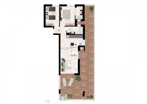 Es gibt Wohnungen in 7 Blöcken unterteilt, die eine Auswahl im Erdgeschoss, ersten Stock, zweiten Stock und Penthouses mit einer privaten Terrasse und Dachterrasse bieten.
