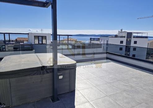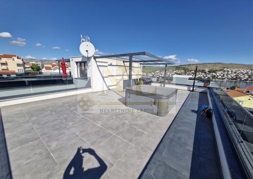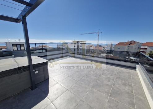 Wir verkaufen die Penthouse-Wohnung S6 mit Dachterrasse im zweiten Stock eines Neubaus in Okrug Gornji, in bester Lage, nur 200 Meter vom Meer und Strand entfernt.