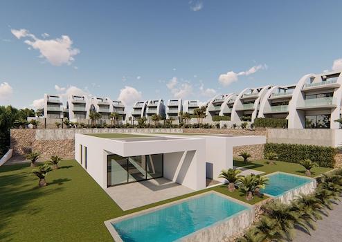 Es gibt verschiedene Wohnungsmodelle zur Auswahl, entweder im Erdgeschoss mit Grundstück oder im ersten Stock mit Dachterrasse und privatem Aufzug. Alle Wohneinheiten verfügen über 3 - 4 Schlafzimmer, 2 bis 3,5 Badezimmer (1 davon en suite), eine Wohnzimmer mit offener Küche und Terrasse sowie in den meisten Fällen auch über einen Privatpool. Zu den Gemeinschaftsbereichen gehören unter anderem Außen- und Innenpool, Gartenanlagen, Fitnessraum, Grillbereich, Sauna und Hängematten.