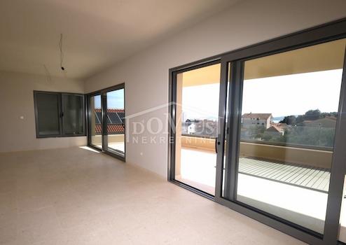 Neubau – Penthouse mit Panoramablick auf die Stadt und das Meer in einem Wohngebäude mit insgesamt 4 Wohneinheiten. Das Gebäude verfügt über insgesamt drei Etagen: Erdgeschoss + 1. Stock + 2. Stock. Die Wohnung nimmt die gesamte zweite Etage ein, ist nach Südosten ausgerichtet und hat eine Gesamtwohnfläche von 126,73 m². Sie besteht aus einem Flur, einem Wohnzimmer mit Essbereich und Küche, die auf eine überdachte Terrasse von 38,44 m² mit wunderschönem Meerblick führt, einem Badezimmer, einem Waschraum und drei Schlafzimmern. Eines der Schlafzimmer verfügt über ein eigenes Badezimmer und eine überdachte Terrasse von 17,17 m², während ein weiteres Schlafzimmer eine Terrasse von 4,22 m² hat. Die hochwertige Ausstattung umfasst moderne Badezimmereinrichtung und Bodenbeläge, Klimaanlage in jedem Raum, elektrische Rollläden und einen Aufzug. Der voraussichtliche Einzugstermin ist im Frühjahr Zur Wohnung gehören zwei Parkplätze. Entfernung: 750 m vom Blue Beach und 450 m vom Stadtzentrum sowie allen wichtigen Einrichtungen.