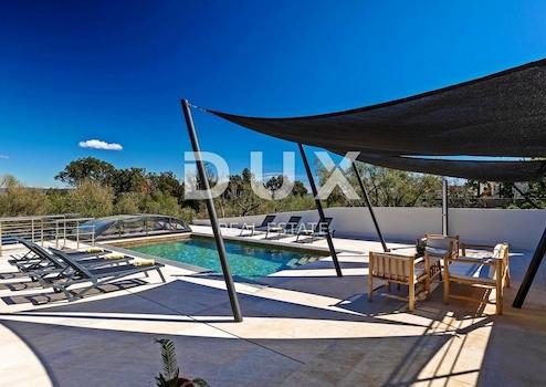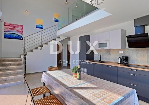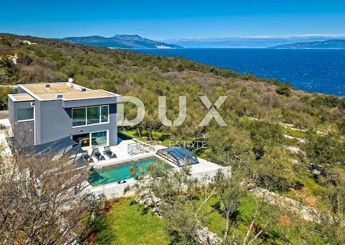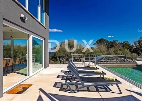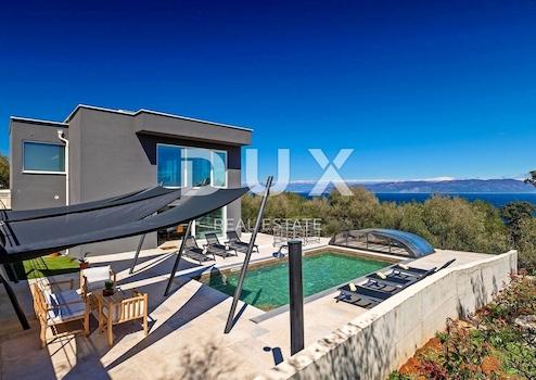 An der südöstlichen Küste Istriens, wo grüne Hügel auf das Meer treffen, wo Natur und Erbe zusammenkommen, gibt es zwei Städte ähnlicher Größe mit unterschiedlichen, sich aber gegenseitig ergänzenden Charakteren – Labin und Rabac, nur vier Kilometer voneinander entfernt. Rabac wird wegen seiner weißen Kiesstrände, der üppigen mediterranen Vegetation und dem kristallklaren Meer auch die Perle der Kvarner-Bucht genannt. Einst ein kleines Fischerdorf, ist Rabac heute ein attraktives Touristenziel, das in einem Netz farbenfroher Straßen eine Fülle kultureller Veranstaltungen verbirgt. Die grüne Umgebung von Rabac und das malerische Hinterland laden das ganze Jahr über zu Abenteuern, Forschung und Erholung ein. Unweit von Rabac und Labin in einer kleinen Siedlung am Meer steht eine Villa mit Panoramablick auf das Meer zum Verkauf. Es befindet sich in einer ruhigen Gegend mit einer Aussicht, die Učka, die Stadt Rijeka, die Kvarner-Inseln und die kristallklare Adria umfasst, und die Lage dieser Immobilie bietet genau diese bezaubernde und einzigartige Aussicht. Es zeichnet sich durch ein modernes Design aus und bei seiner Konstruktion wurden hochwertige Baumaterialien gemäß den höchsten Standards für den Wohnungsbau verwendet. Das minimalistische, moderne Interieur legt Wert auf offene Räume mit Glaswänden, die viel natürliches Licht und einen Panoramablick auf das Meer ermöglichen. Es handelt sich um eine Wohneinheit, deren Fläche auf zwei Etagen verteilt ist; Erdgeschoss und erster Stock. Das Erdgeschoss besteht aus einer Küche mit Esszimmer, drei Schlafzimmern, drei Badezimmern und einer Gästetoilette. Im ersten Stock gibt es ein geräumiges Wohnzimmer, ein Schlafzimmer, ein Badezimmer und ein Gäste-WC. Der Hof ist landschaftlich und gärtnerisch angelegt und eingezäunt, und für vollkommene Harmonie sorgt der beheizte, 38 m² große Swimmingpool mit Liegewiese. Die Lage, Struktur und der Komfort machen diese Immobilie zu einer idealen Gelegenheit für ein ruhiges Familienleben sowie zu einer Investition zur touristischen Vermietung.