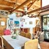 Über eine äußere Steintreppe gelangt man in das Obergeschoss, wo ein gemütlicher Wohnbereich mit viel Licht auf Sie wartet: Wohnzimmer mit Essbereich, Schlafzimmer, voll ausgestattete Küche und Badezimmer. Holzdeckenbalken und Naturmaterialien verleihen dem Interieur rustikalen Charme und Wärme.