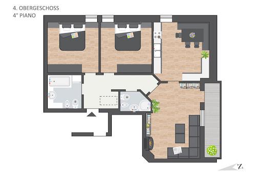 Diese stilvolle 3-ZIMMER-WOHNUNG befindet sich im letzten Obergeschoss eines zentral gelegenen Kondominiums in Klausen.