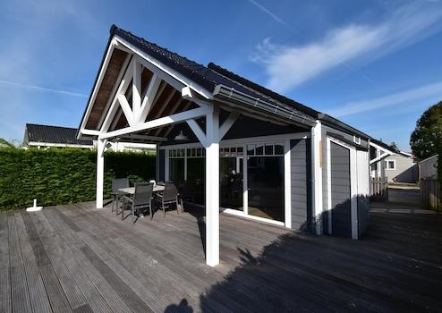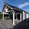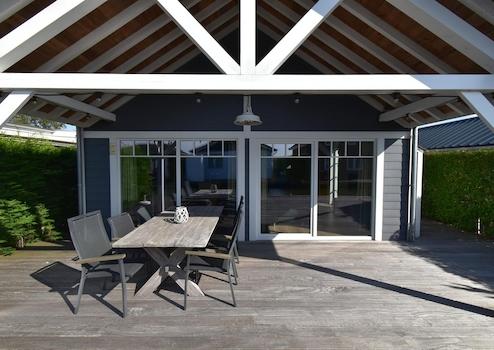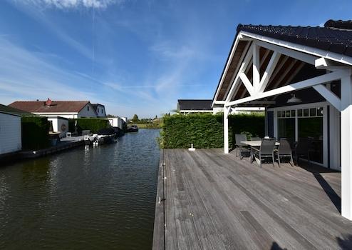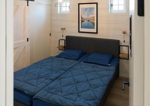 Dieses brandneue Wasserfront-Ferienhaus aus 2022 im Ferienpark De Groote Vliet kombiniert luxuriöse Architektur mit dem einzigartigen Charme von West-Friesland. Das ebenerdige Haus von 75m² bietet 2 Schlafzimmer, 1 Badezimmer, 1 separate Toilette und ein Grundstück von 198m² mit eigenem Steg direkt am Wasser, perfekt für Familien oder als Investition. Die spektakuläre Lage am Wasser mit eigenem Steg sorgt für ein einzigartiges Urlaubsgefühl und direkten Zugang zu Segeln und Wassersport. Die moderne Architektur zeigt sich in der dunkelgrauen Fassadenverkleidung mit weißen Akzenten, Holzbalken und großen Terrassentüren, die für viel natürliches Licht sorgen. Der luxuriöse offene Wohnbereich mit Holzbalken, auffälliger blauer Akzentwand und moderner Küche mit Kochinsel schafft ein räumliches, stimmungsvolles Wohnerlebnis. Die vollständig ausgestattete Küche mit schwarzen Metrofliesen und Einbaugeräten bietet allen Komfort für Selbstversorgung. Die zwei Schlafzimmer, eines mit Etagenbetten für vier Personen und ein Hauptschlafzimmer mit Boxspringbett, bieten optimale Ruhe und Flexibilität. Das luxuriöse Badezimmer mit schwarz-weißen Metrofliesen, portugiesischen Bodenfliesen und begehbarer Dusche erhöht den Komfort erheblich. Das Energielabel A mit Wärmepumpe garantiert nachhaltiges und kostensparendes Wohnen.