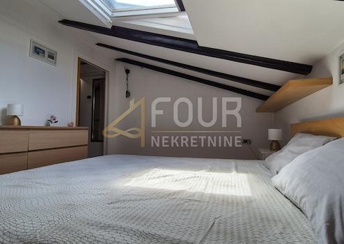 Maisonette-Wohnung mit einer Bruttowohnfläche von 66,11 m2/ Nettowohnfläche von 51,34 m2, das Untergeschoss der Wohnung besteht aus einer ausgestatteten Küche mit Wohnzimmer und Balkon sowie einem Badezimmer, während sich im Obergeschoss zwei Schlafzimmer mit Dachfenstern befinden.