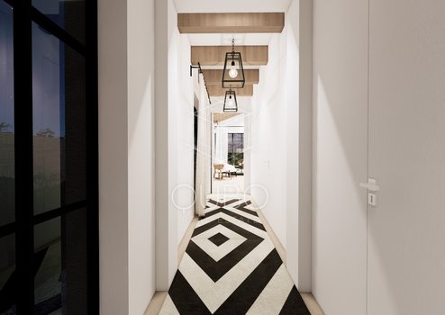 Das genehmigte Projekt sieht ein modernes eingeschossiges Haus mit 160 m² Wohnfläche vor, bestehend aus: