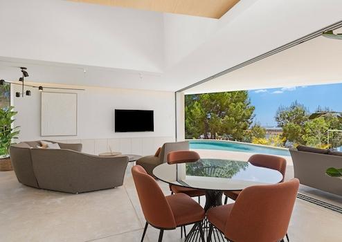 Als vollständig energieneutrales Zuhause erzeugt Villa Pebbles den Großteil ihres Stroms über eine 40 m² große Photovoltaikanlage auf dem Dach. Die Nutzung von Solarenergie ist perfekt an das mediterrane Klima angepasst und unterstreicht den zukunftsorientierten Charakter dieser außergewöhnlichen Immobilie.
