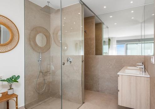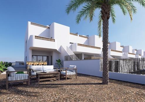 Diese stilvollen Apartments im Ibiza-Stil vereinen mediterrane Eleganz mit modernem Wohnkomfort. Jede Wohnung bietet drei helle Schlafzimmer, zwei moderne Badezimmer sowie ein privates Solarium - ideal, um die Sonne und den Ausblick in vollen Zügen zu genießen. Die Anlage besteht aus zwei Gebäudekomplexen und überzeugt durch durchdachte Architektur und hochwertige Materialien.