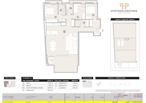 Die Wohnung bietet 3 Schlafzimmer, 2 Badezimmer sowie eine großzügige, lichtdurchflutete Wohnfläche mit offenem Wohn-/Essbereich und integrierter Küche. Große Fensterfronten sorgen für ein helles Ambiente und verbinden den Wohnraum mit der privaten Terrasse.