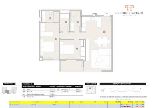 Die Wohnung bietet 2 Schlafzimmer, 2 Badezimmer sowie eine großzügige, lichtdurchflutete Wohnfläche mit offenem Wohn-/Essbereich und integrierter Küche. Große Fensterfronten sorgen für ein helles Ambiente und verbinden den Wohnraum mit der privaten Terrasse.