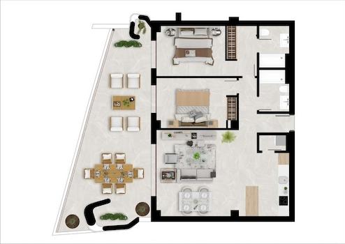 Das Bauprojekt Fuente Lirios besteht aus einem Gebäude in zentraler Lage mit 28 Apartments im mediterranen Stil mit 1, 2 oder 3 Schlafzimmern, und 1 oder 2 Badezimmern.
