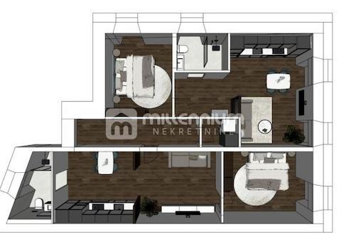 Im Herzen von Rijeka, direkt im Stadtzentrum, steht eine wunderschöne, neu renovierte Wohnung mit einer Fläche von 93,67 m² zum Verkauf, gelegen im zweiten Stock eines Wohngebäudes.