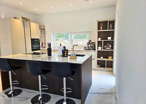 Die Küche der renommierten Marke Veneto Cucine mit eleganten Glasfronten, maßgefertigte Einbauschränke, hochwertige Sanitäranlagen und Energieklasse A+ bestätigen zusätzlich das hohe Ausführungsniveau. Die Villa wurde nach modernen Baustandards errichtet, mit STO-Fassade, Hebe-Schiebe-Fenstern mit Veca-Profilen und Vier-Jahreszeiten-Verglasung.