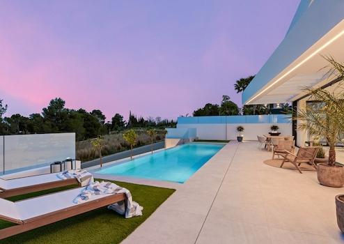 Diese moderne Villa in Polop bietet alles, was Sie sich von einem Zuhause an der Costa Blanca wünschen: drei Schlafzimmer, drei Badezimmer, einen privaten Swimmingpool und einen eigenen Stellplatz auf dem Grundstück.