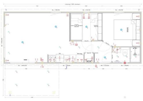 Schlafzimmer 2 hat insgesamt 3 Betten 90x200cm. Auf der einen Seite ist 1 Boxspring. Über diesem Bett ist Schrankraum.