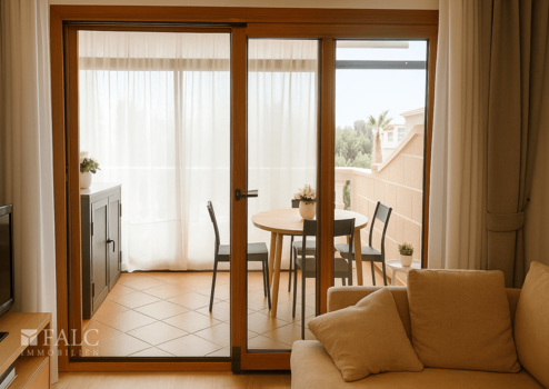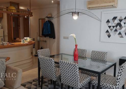 Das 81 m² Apartment verfügt über 3 Schlafzimmer, 2 Badezimmer, eine offene Küche sowie einen hellen Wohn- und Essbereich mit 2 Zugänge zur 6 m² großen Terrasse, die zur Hälfte zu einem gemütlichen Wintergarten umgebaut wurde – perfekt für die kühleren Monate.