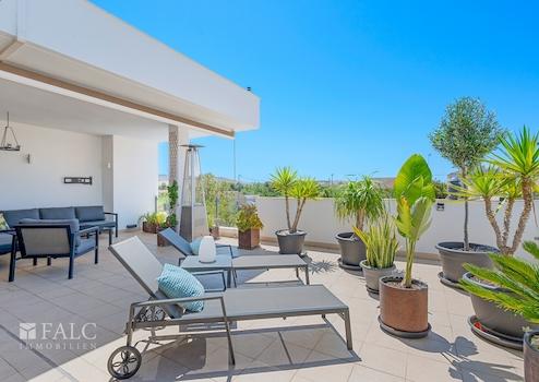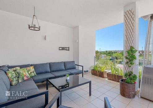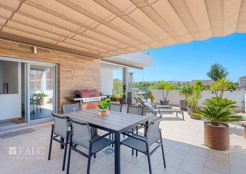 Ein Highlight ist der private Pool mit Wasserfall sowie der separate Jacuzzi – beide befinden sich auf dem gepflegten Außenbereich, der zum Entspannen einlädt. Die großzügige Dachterrasse bietet nicht nur fantastische Ausblicke, sondern auch Ausbaupotenzial: Hier wurden bereits Anschlüsse für ein weiteres Badezimmer und Schlafzimmer gelegt.