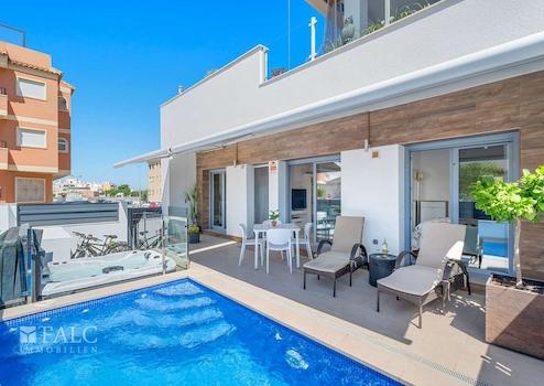 Dieses stilvolle Stadthaus ist ein echtes Juwel auf dem Immobilienmarkt an der Costa Blanca – nicht nur wegen seiner hochwertigen Ausstattung, sondern auch wegen seiner Geschichte und Seltenheit. Es wurde im Jahr 2018 im Rahmen eines exklusiven Bauprojekts errichtet, bestehend aus lediglich vier Wohneinheiten. Alle derzeitigen Eigentümer wohnen dort seit der Fertigstellung – das spricht für die hohe Zufriedenheit und Qualität dieses Projekts. Nun steht eines dieser begehrten Häuser zum allerersten Mal zum Verkauf.