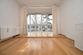Die Wohnung ist nach Westen ausgerichtet, mit Blick auf einen Garten mit viel Grün.