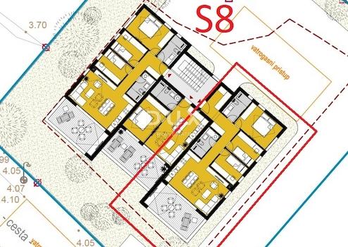 Die Wohnung S8 befindet sich im zweiten Stock eines Gebäudes mit 9 Wohnungen und ist nach Südwesten ausgerichtet, was viel Tageslicht und eine angenehme Atmosphäre den ganzen Tag über gewährleistet. Sie verfügt über eine Nettonutzfläche von 81,71 m², während die Gesamtfläche mit den dazugehörigen Annehmlichkeiten 108,26 m² beträgt.