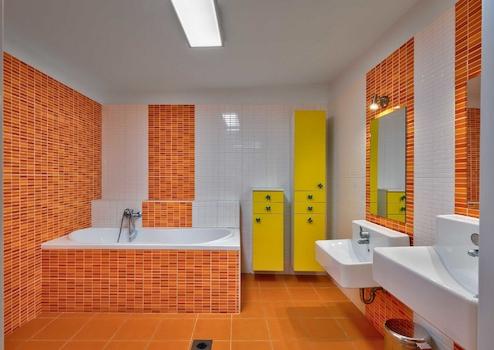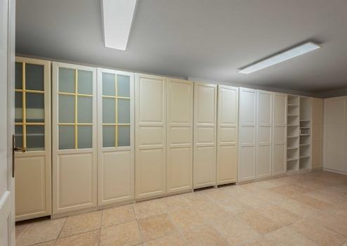 Auf der mittleren Ebene befinden sich das Elternschlafzimmer mit separatem Ankleidezimmer und Bad, zwei Kinderzimmer, dazwischen ein Kinderwohnzimmer mit Bad sowie ein fast 60 m² großer Multifunktionsraum mit eingebauter Sauna und einem weiteren Badezimmer.